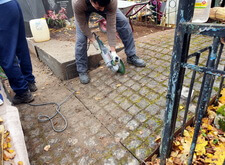 Затем мы замыли всю территорию участка, параллельно с созданием раствора из пескобетонной смеси проведя влажную уборку на месте захоронения.