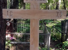 Дождавшись хорошей погоды мы вновь вернулись на могилу. Крест мы покрыли защитным составом, который исполняет одновременно защитную и влагоотталкивающую функцию.